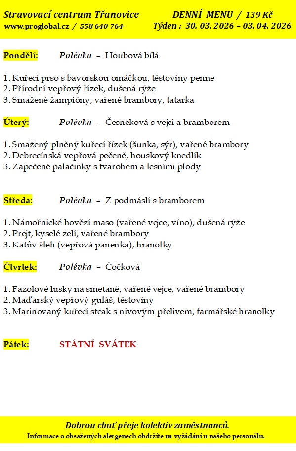 Proglobal - Jídelníček - březen/duben 2026