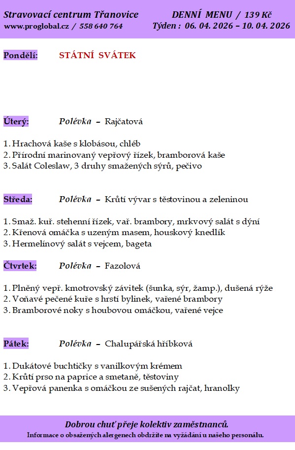 Proglobal - Jídelníček - březen/duben 2026