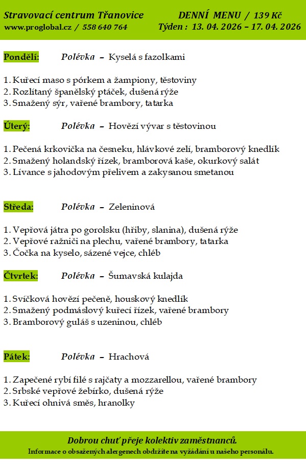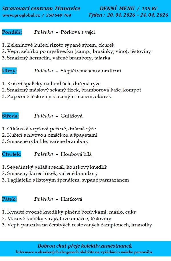 - Denní menu - Jídelna