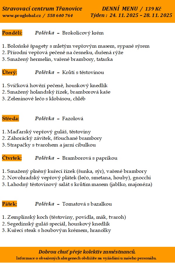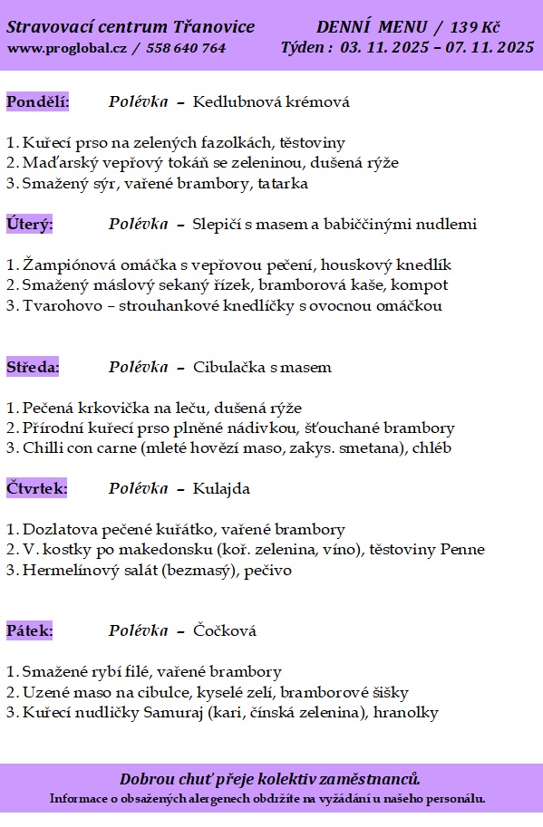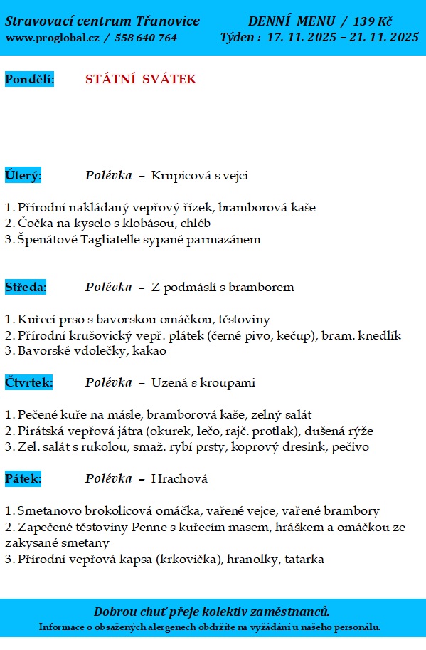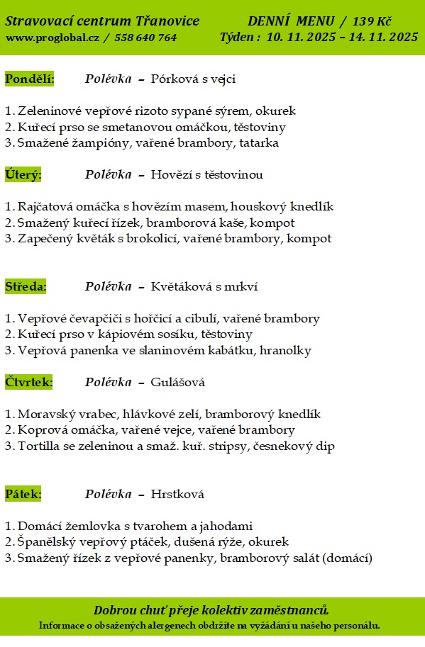 Proglobal - Jídelníček - listopad 2025